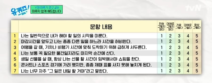 I watched an episode of “You Quiz on the Block(Korean talk show)” where a professor from Yonsei University talked about how to stop procrastinating.